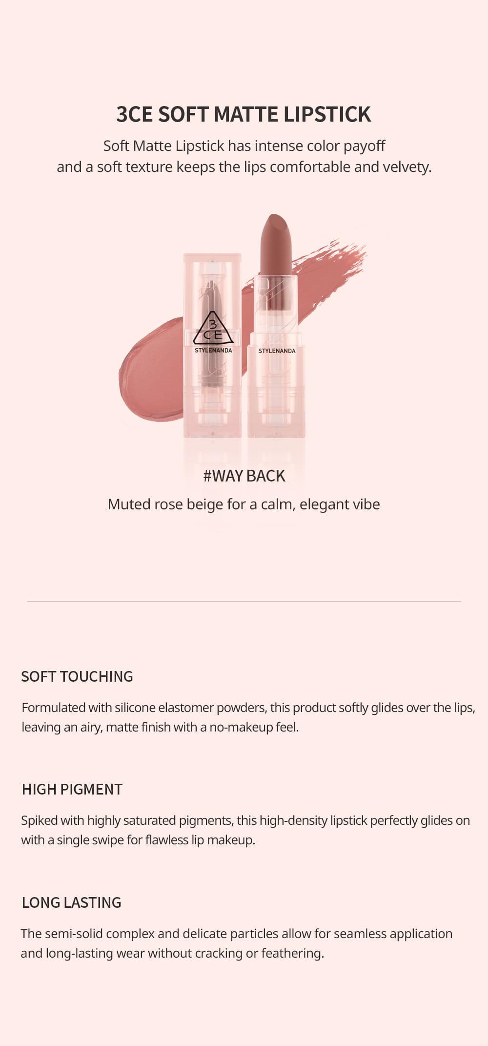 Soft Matte Lipstick has intense color payoff and a soft texture keeps the lips comfortable and velvety.