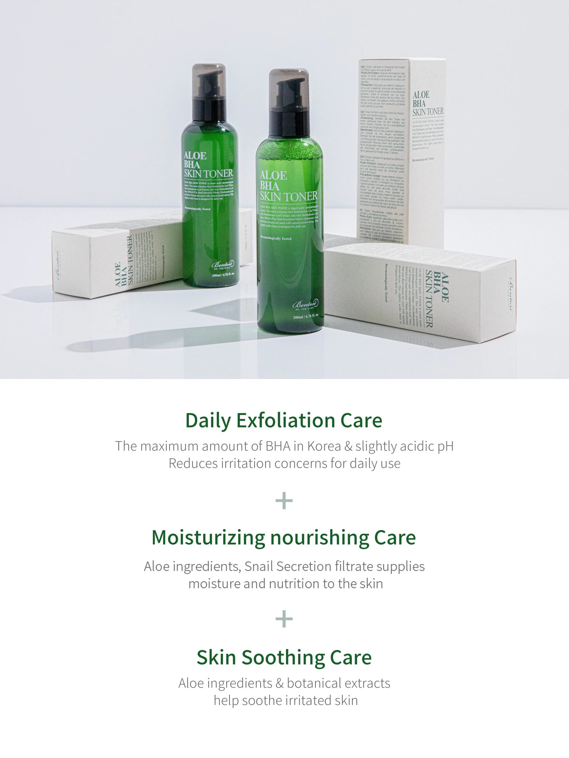 BentonвАЩs Aloe BHA Skin Toner contains key ingredients such as Salicylic Acid to help balance any skin concerns including breakouts, sensitivity, and dehydration.