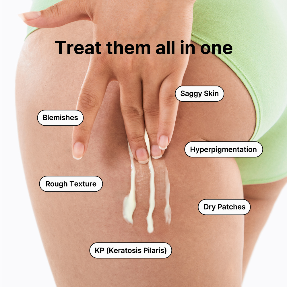 – Rough skin texture & chicken skin (KP / keratosis pilaris)