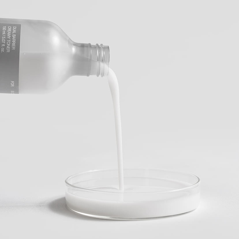 A dual barrier creamy toner that comfortably moisturizes dry skin