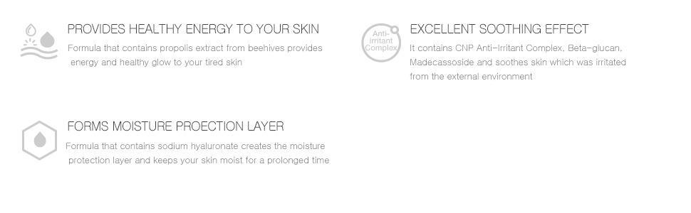 -Ampoules for skin’s natural vitality It is a propolis ingredient extracted from nature. It helps to make skin healthy and radiant, while also helping to calm and hydrate skin. Propolis is a substance that protects honeycomb inside of honeycomb by combining the resin, which is a protective substance secreted by plants, with bees’ needles and enzymes. It is very effective for calming and nourishing the skin. Helps to improve sensitive and sensitive skin, and gives vitality and shine to tired and depressed skin.