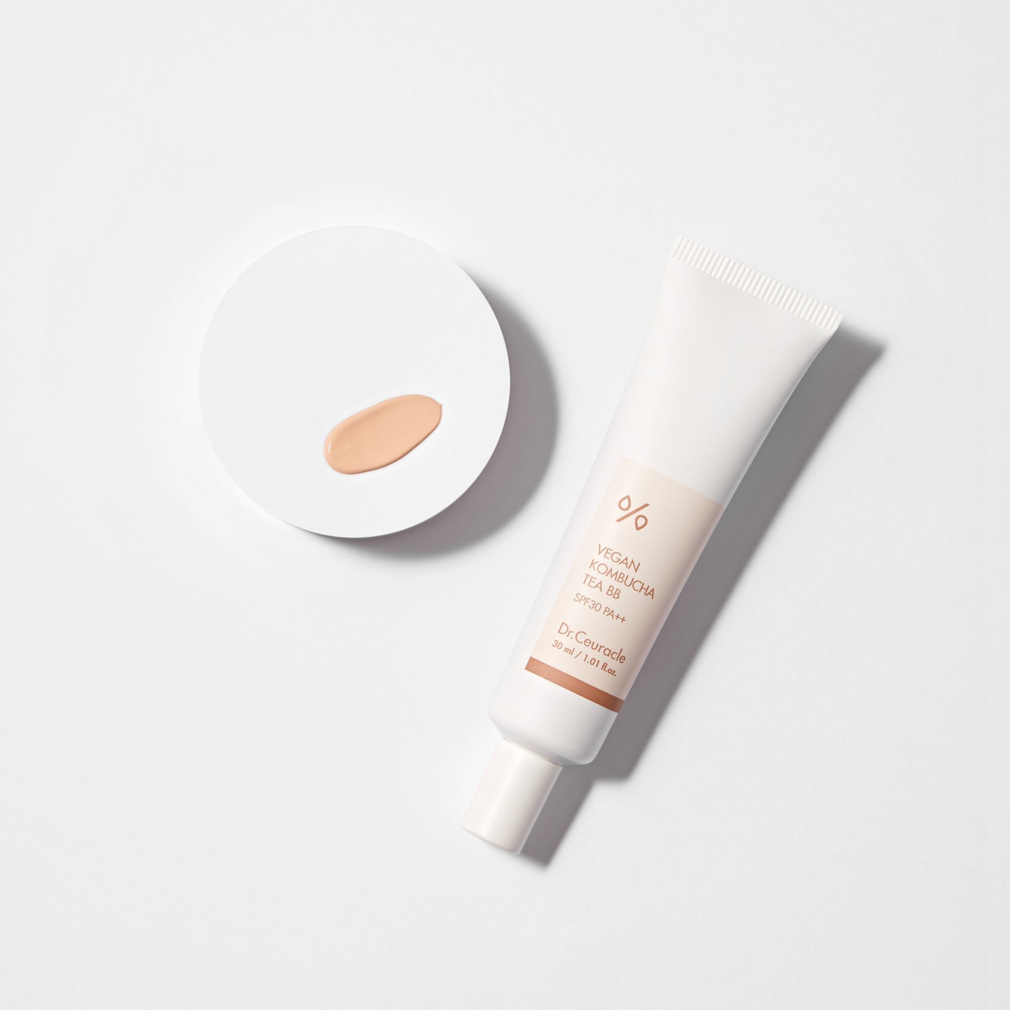 A vegan BB tinted moisturizer formulated with Kombucha Extract, providing dewy coverage for glowing healthy skin