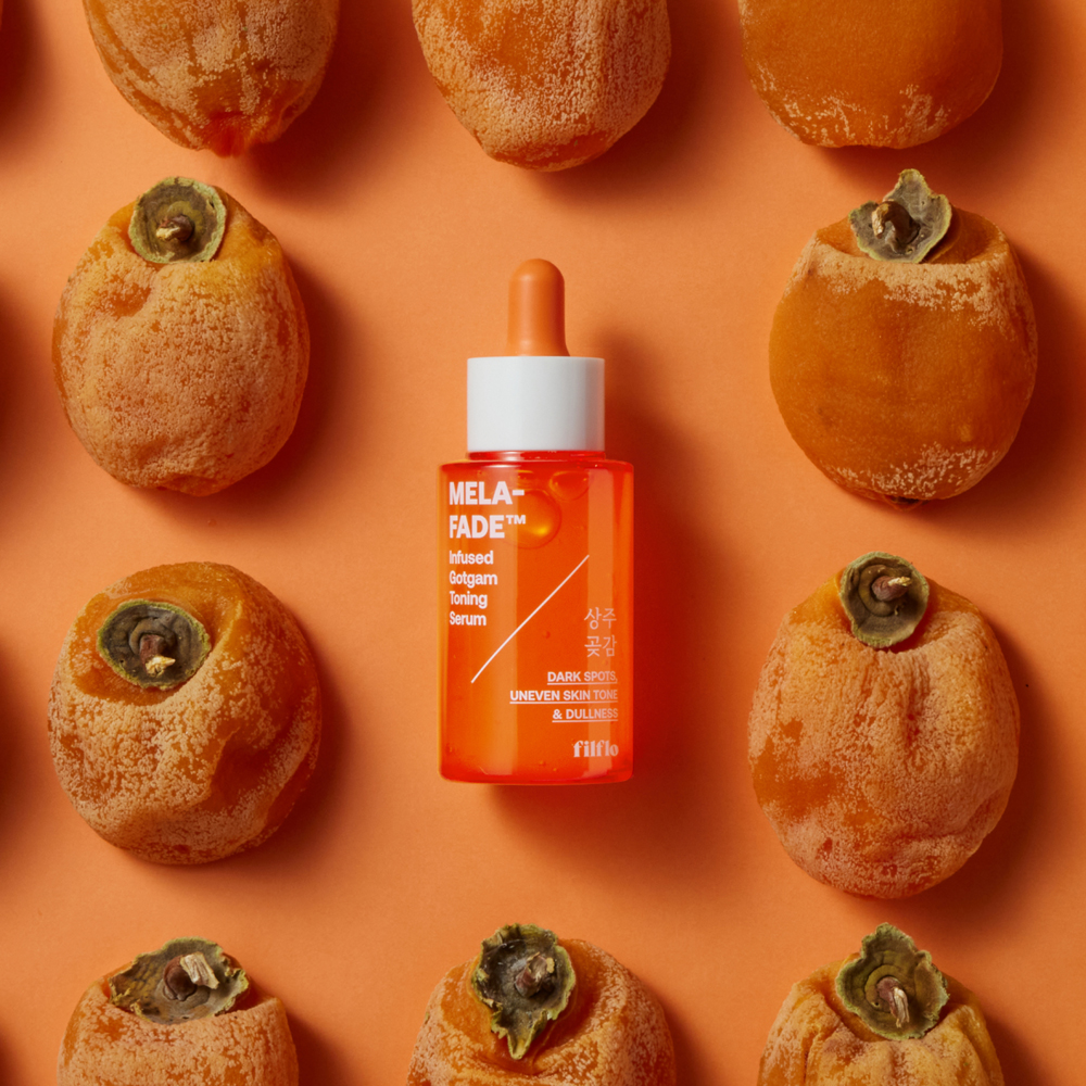 73% Sangju gotgam (dried persimmon) extract, MELA-FADEвДҐ (patented complex), niacinamide, allantoin, adenosine, and hyaluronic acid.