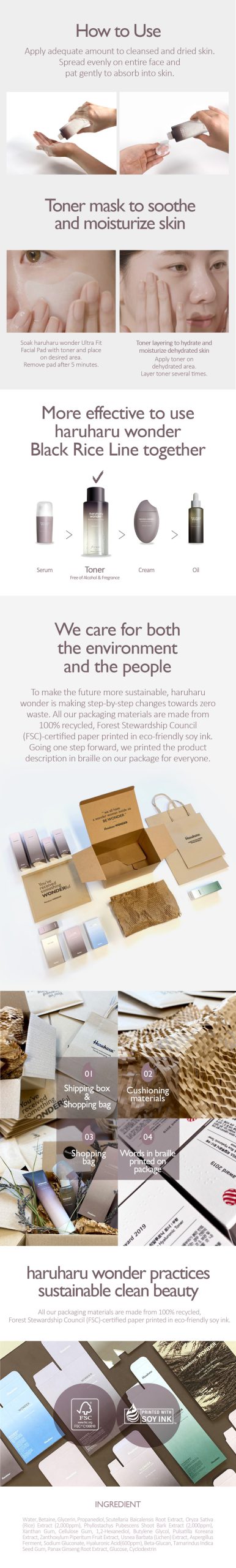 Fermented 100% Korean-produced black rice extracts restore elasticity to the skin with anti-inflammatory and brightening effect.
