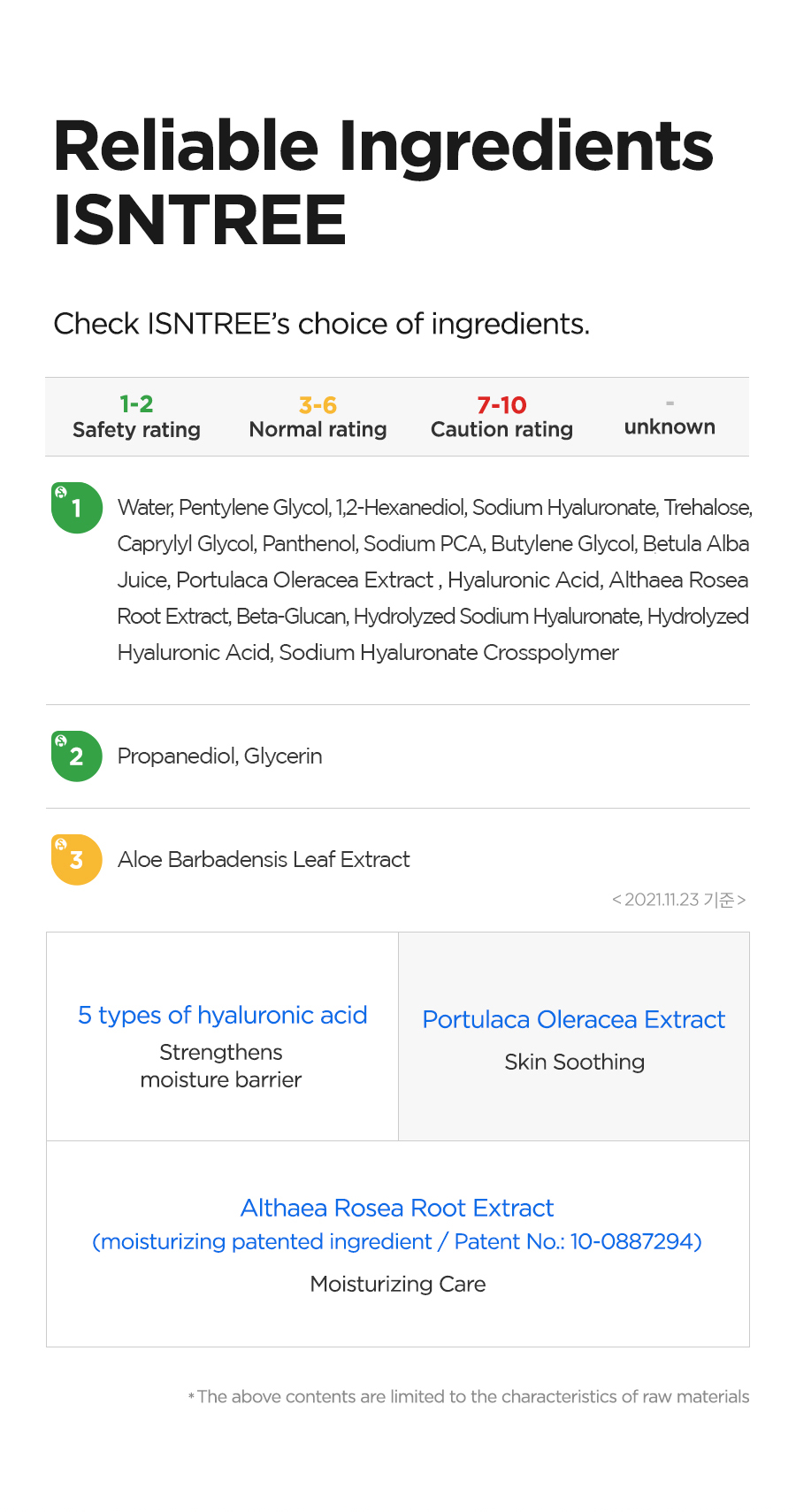 Water, Propanediol, 1,2-Hexanediol, Sodium Hyaluronate, Trehalose, Sodium PCA, Glycerin, Hyaluronic Acid, Aloe Barbadensis Leaf Extract, Althaea Rosea Root Extract, Betula Alba Juice, Portulaca Oleracea Extract, Hydrolyzed Sodium Hyaluronate, Beta-Glucan, Panthenol, Pentylene Glycol, Caprylyl Glycol, Butylene Glycol