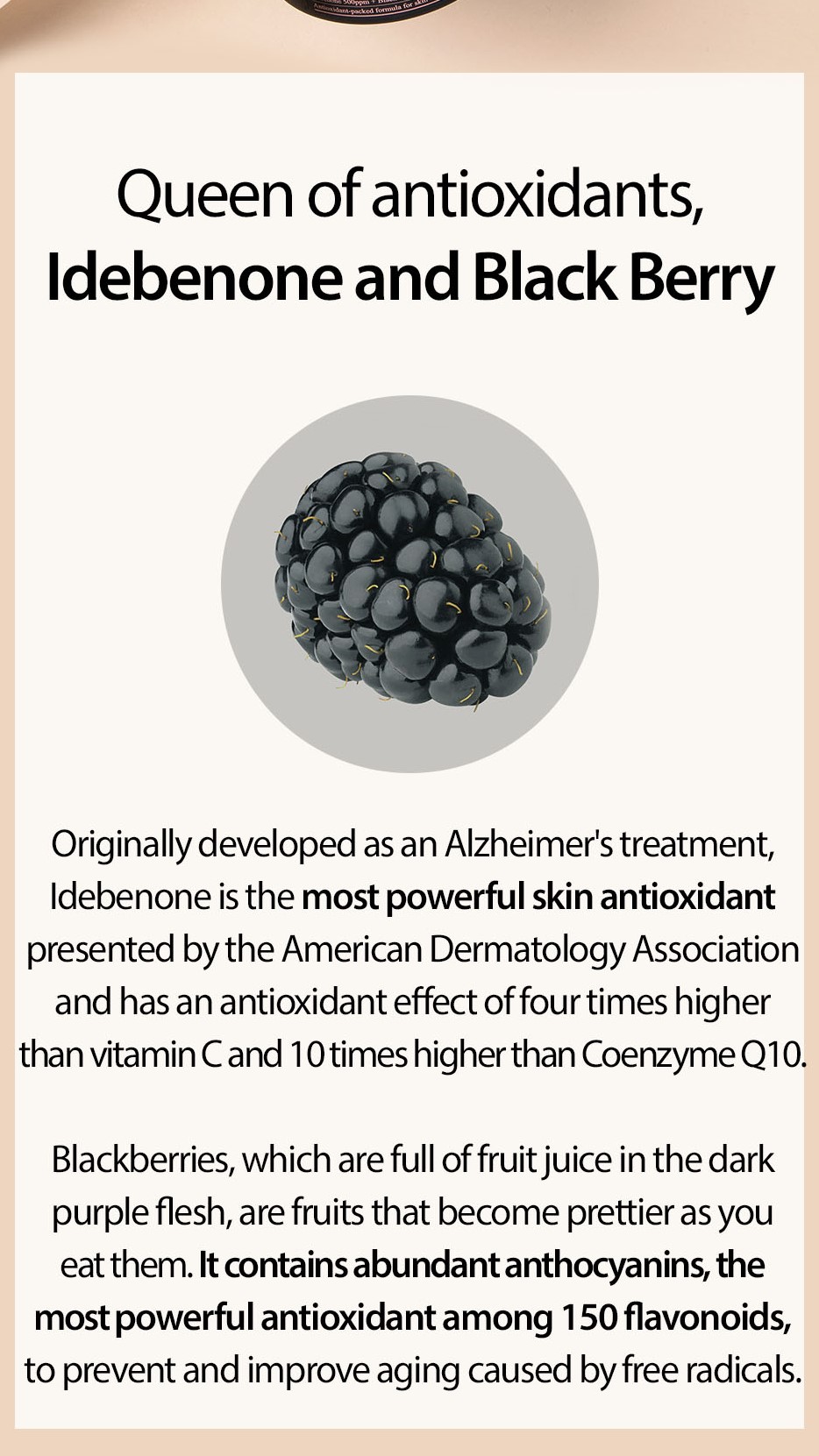 A multi-functional cream formulated with 63% Blackberry Complex and Idebenone (500ppm) that have powerful antioxidant property, restoring youthful looking skin.