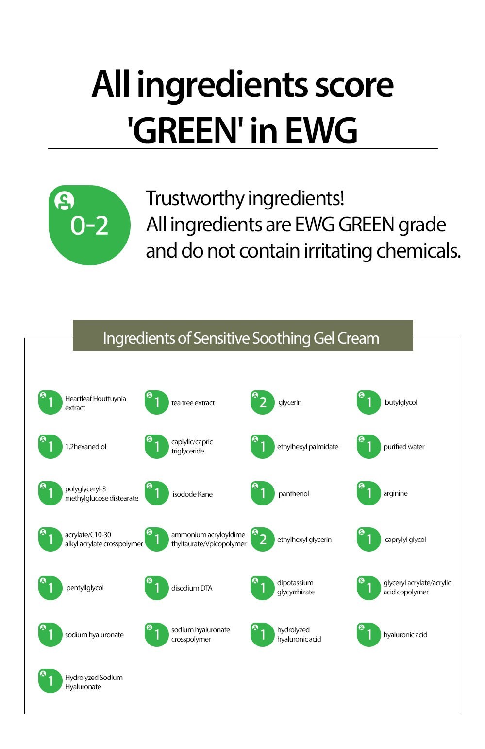 “Houttuynia Cordata Extract, Melaleuca Alternifolia (Tea Tree) Extract, Glycerin, Butylene Glycol, 1,2-Hexanediol, Caprylic/Capric Triglyceride, Ethylhexyl Palmitate, Water, Polyglyceryl-3 Methylglucose Distearate, Isododecane, Panthenol, Arginine, Carbomer, Ammonium Acryloyldimethyltaurate/VP Copolymer, Ethylhexylglycerin, Caprylyl Glycol, Pentylene Glycol, Disodium EDTA, Dipotassium Glycyrrhizate, Glyceryl Acrylate/Acrylic Acid Copolymer, Sodium Hyaluronate(2,200,000D), Sodium hyaluronate Crosspolymer, Hydrolyzed Hyaluronic Acid, Hyaluronic