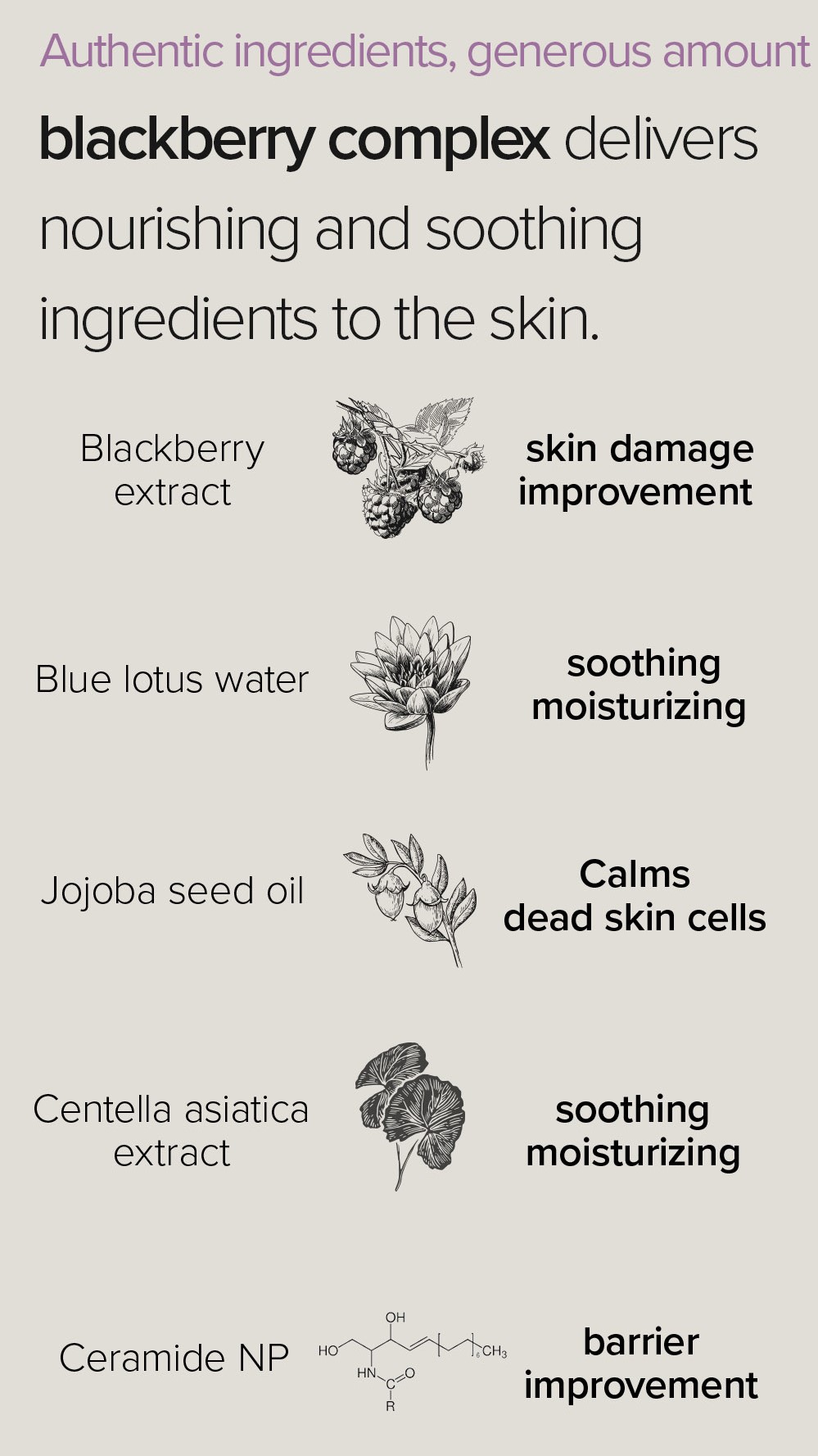 Contains 50,000ppm of blackberry extract to delay agingand improve aging caused by free radicals