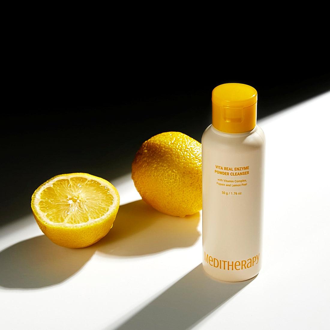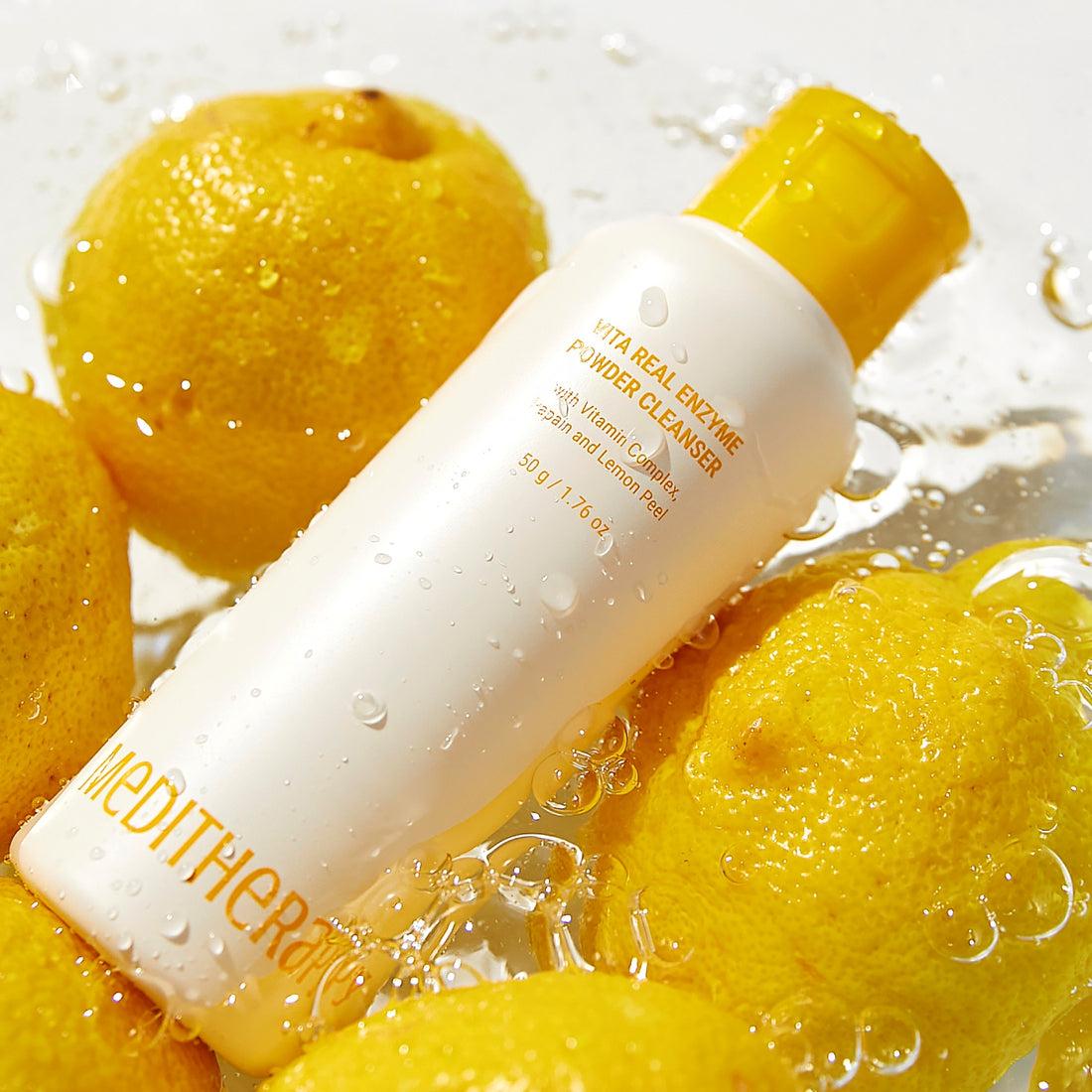 [REAL LEMON PEEL] Vita Real Toning enzyme powder cleanser contains generous amounts of lemon peel to cleanse even the crevices of the skin. [VITAMIN ENZYME RECIPE] Enriched with Lemon Original Scrub and Papain enzyme, this face cleanser effectively removes waste and dead skin cells, while Vitamin E Capsule & Phytomucin enhance hydration and skin strength. [MILD ACIDIC CLEANSER] pH 5.5 mild acidic cleanser helps maintain the pH balance of healthy skin as well as delicate cleansing. [EVEN SKIN TONE] Meditherapy Vita Real Enzyme Powder Cleanser has 3 points : Texture, Ingredients, Fragrance. By paying careful attention to these three points, significant differences have been achieved. [FOR SENSITIVE SKIN] This mild cleanser removes dead skin cells but do not give any irritaion as other scrubs. It helps getting rid of the makeup wastes from every corner of the pores.Ingredients
