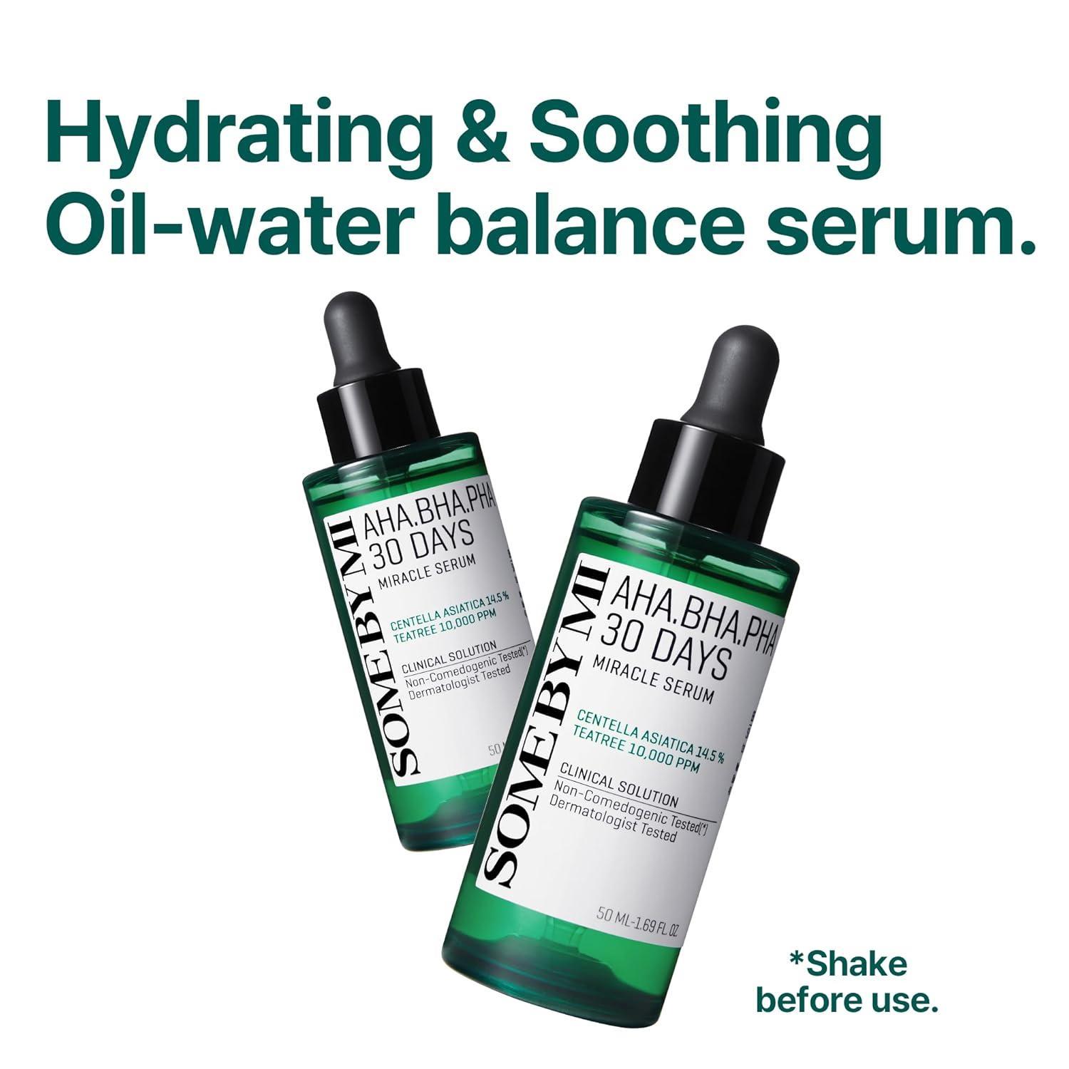 If you have the skin sensitive to stimuli, your serum has to be different.SOME BY MI AHA вИЩ BHA вИЩ PHA 30 Days Miracle Serum contains 10,000 ppm of Teatree leaf water and 14.77 % of Centella Asiatica Extract. AHA вИЩ BHA вИЩ PHA remove dead skin cells and impurities and control the oil-moisture balance to help maintain smooth, healthy-looking skin. What’s more, vegetable oil adds a moisturizing sensation.Are you worried if it might be too irritating for the skin? Don’t worry. It is free of 20 worrisome ingredients for skin and has even completed a skin irritation test. It has a low-pH formula and it is infused with a patented ingredient that protects the skin, so it can even be used by sensitive skin with a comfortable sensation.Say goodbye to exhausting problematic skin. Miracle serum will be with you.