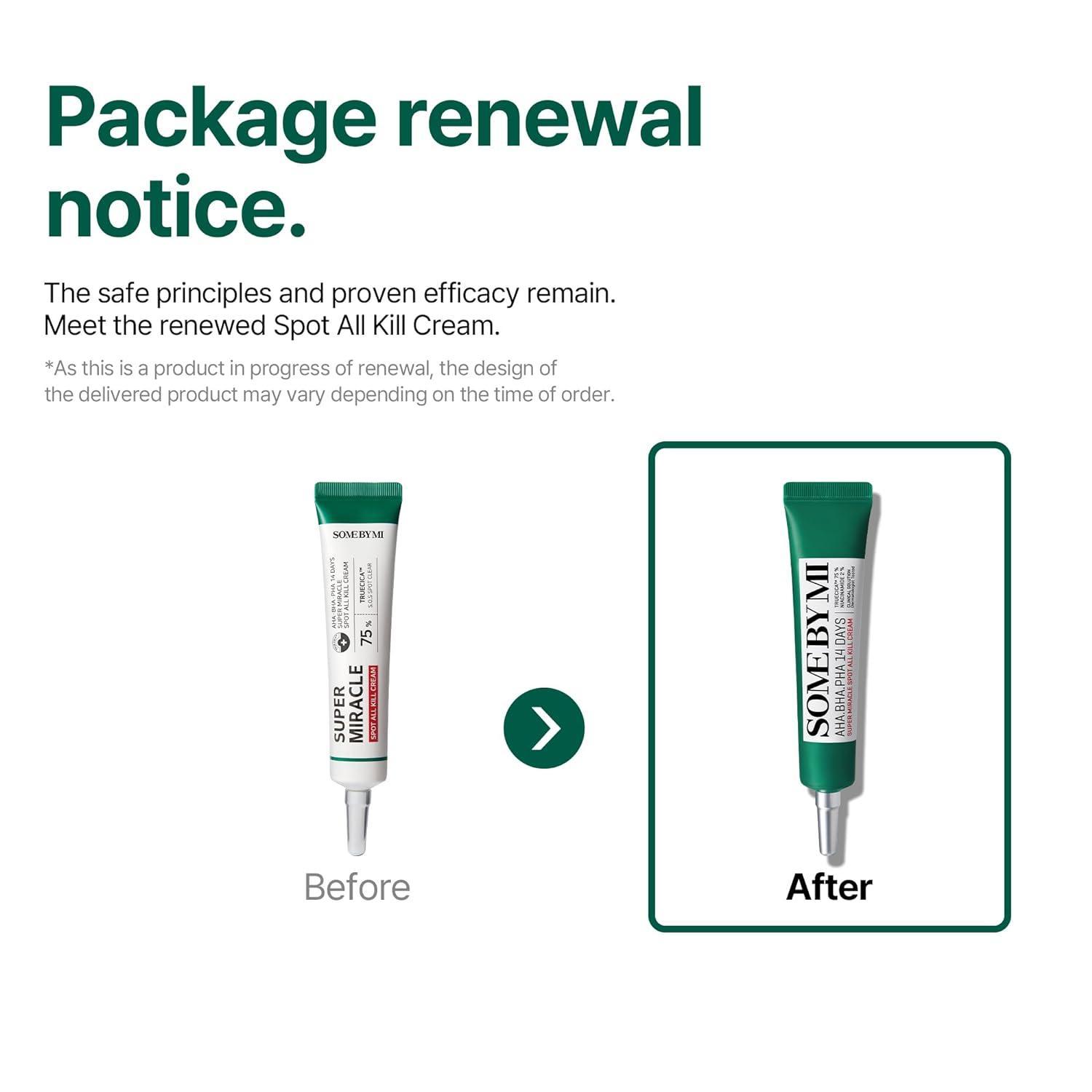 Angry skin, and small problematic spots that are especially noticeable on your irritated skin. Take care of them with powerful, completely effective intensive calming care.Super Miracle Spot All Kill Cream is an intensive care cream for small spots, that is formulated with AHA вИЩ BHA вИЩ PHA, ingredients that effectively remove dead skin cells and impurities, and D-Panthenol that helps control oil-water balance and recharge the moisture. It contains 750,000 ppm, a great amount of an exclusive calming ingredient, TruecicaвДҐ to quickly calm the skin.It has a light and refreshing texture that doesnвАЩt feel heavy yet moisturizing without any dryness, making it suitable for all skin types to use with a comfortable sensation.