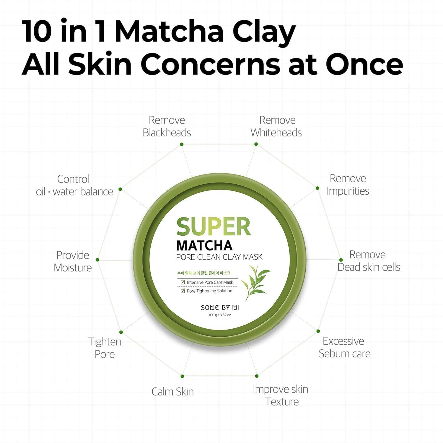 Blackheads, whiteheads, sebum, enlarged pores. etc., Pore concerns that take more than half of your skin concerns! You need to waste so much time to solve it all one by one.Now, solve all your pore troubles with one Super Matcha Clay Mask. It is easy and simple to use. Just apply on your face and wash off.Naturally sourced BHA removes the dead skin cells to unclog the pores and Clay, Matcha powder absorb the impurities, leaving pores empty and clean.Before the surprised pores due to the sudden cleaning, produce oils, Centella Asiatica Extract, Glacier water, and Sparkling water fill the pores with moisture and Match Water finalizes the skincare by tightly squeezing the pores without leaving gaps.Let Super Matcha Clay Mask take care of your pores from now.