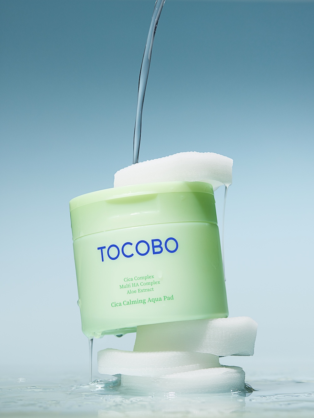 A moisture Calming Toner Pad containing Cica complex, multiple Hyaluronic Acid types, and