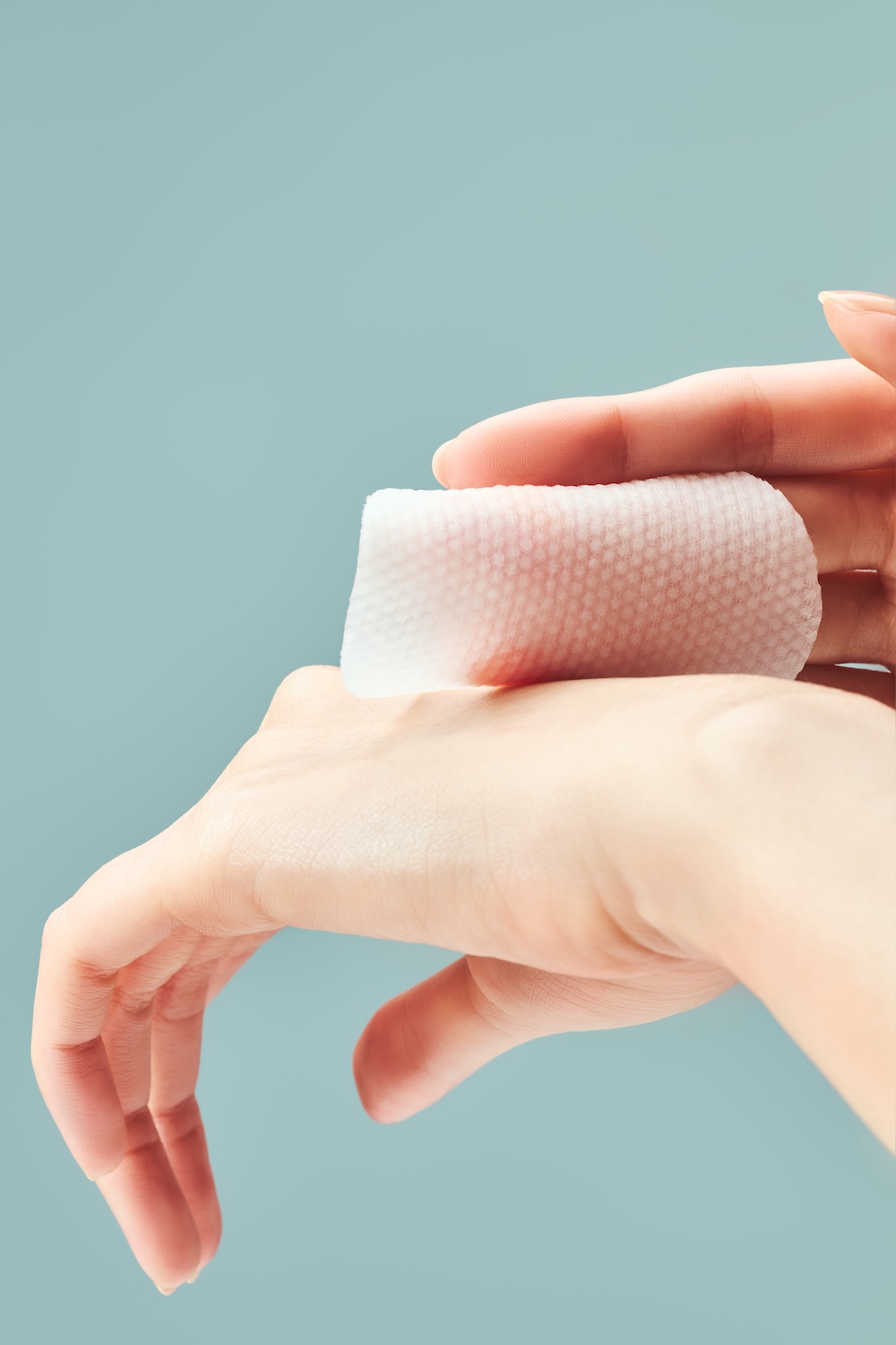 After cleansing, use the pad’s embossed side to refine skin texture and use the