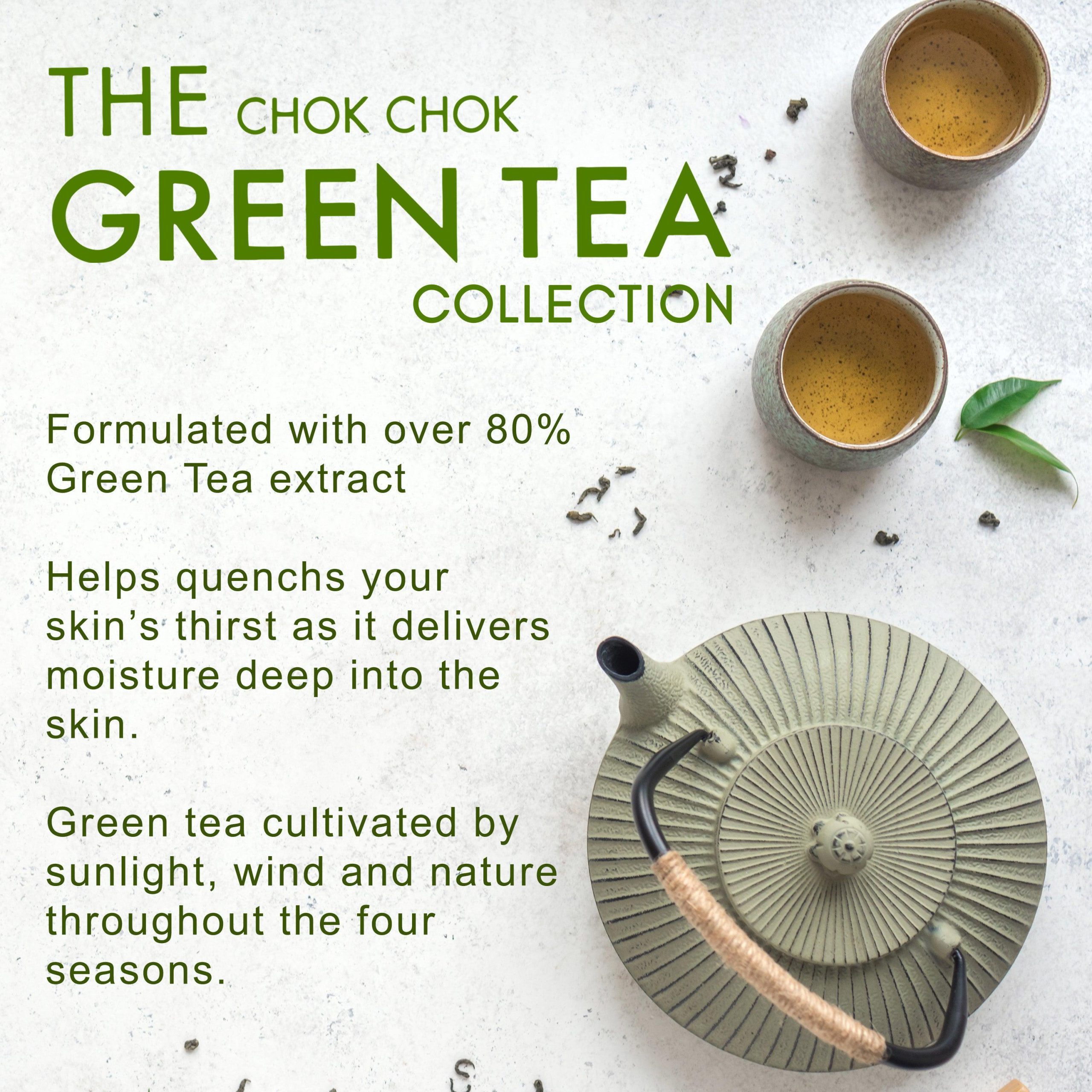The Chok Chok Green Tea Watery Essence contains the moisture of fermented green tea cultivated by sunlight, wind and nature throughout the four seasons. The highly concentrated moisture essence in formulated with over 80% Green Tea extract and helps quench skins thirst as it delivers moisture deep into the skin.